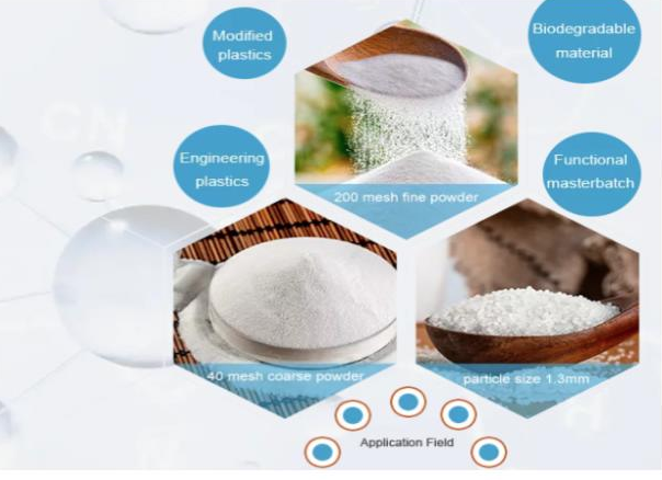 . Có thể được sử dụng như chất trăng trơn, chất mở miệng cho màng PP, CPP, BOPP, LDPE, LLDPE, EVA, PVC, PVDF, PVDC, PU và các màng khác, cũng như màng co-extrusion nhiều lớp, màng nông nghiệp có độ truyền sáng cao và polyetylen luyện kim.