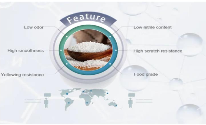 . Thêm sản phẩm này vào cao su (SBE, SBP, SBR, PP) có thể cải thiện độ bóng, chống bám bẩn và kéo dài của sản phẩm cao su, tăng cường khả năng tăng tốc lưu hóa và chống mài mòn, đặc biệt có tác dụng chống rạn nứt do ánh nắng mặt trời.